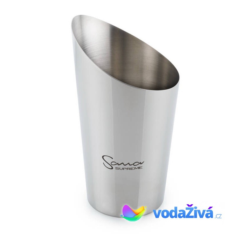 Spojil se s nejstarší českou sklárnou Novosad a syn, která sídlí v Krkonoších, a nechal si od ní zhotovit křišťálovou sklenici na šťávu. Každá sklenice se vyrábí ručně a její objem je 500 ml. Zdobí ji vyleptané logo Sana Supreme. Ze stejné výrobny pochází i nerezový cedník, který pasuje na sklenici a zachytí případnou pěnu a zbytky vlákniny. Zachycenou vlákninu můžete použít při přípravě muffinů a sušenek nebo ji přidat do polévky.