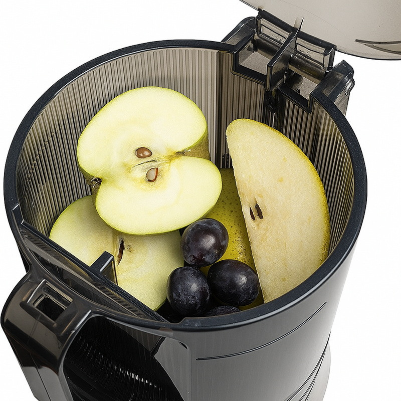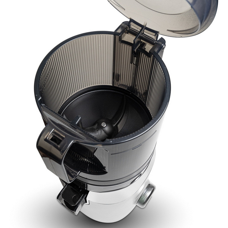 S Sanou 818 už nebudete muset přerušovat odšťavňování. Při plné kapacitě násypky jednoduše přidejte více surovin během procesu, díky otvoru ve víku. Pěchovadlo je součástí balení, ale upřímně řečeno, v drtivé většině případů ho nebudete vůbec potřebovat – vše se plynule zpracuje bez jakékoli námahy. Je to ideální volba pro ty, kteří nechtějí stát u přístroje a pořád přidávat suroviny – Sana 818 se o vše postará.