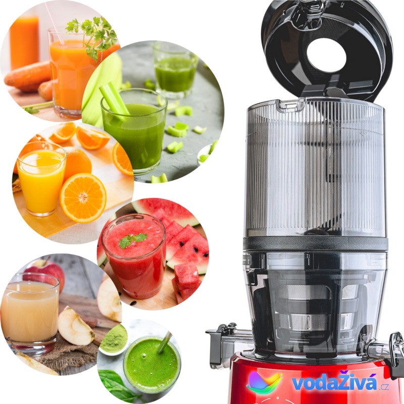jednofázový motor 200 wattů efektivně a téměř nehlučně vymačká šťávu z různých šťavnatých surovin.